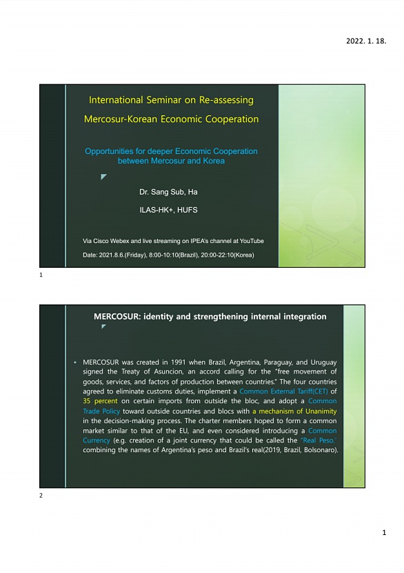 International Seminar on Re-assessing Mercosur-Korean Economic Cooperation |
