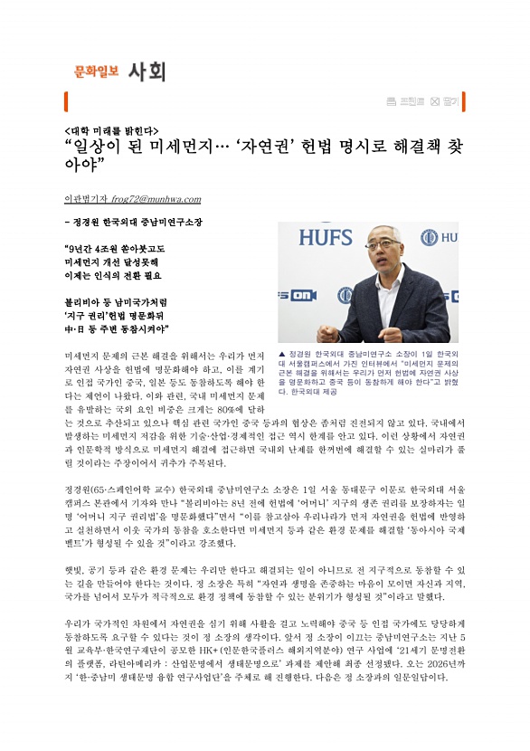 "일상이 된 미세먼지 '자연권' 헌법 명시로 해결책 찾아야" |